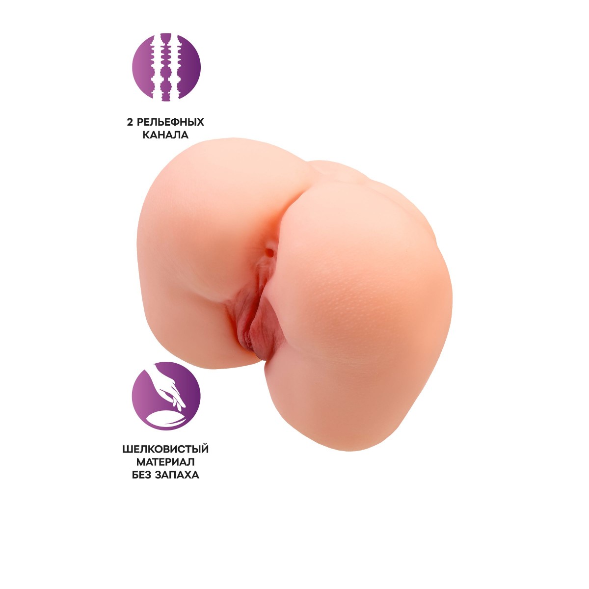 Упругая попка весом 3,1 кг - то, что приятно ощущать в сильных мужских руках.Шелковистый материал напоминает мягкую женскую кожу.Для секса предусмотрено 2 анатомических отверстия с дополнительной стимуляцией: вагинальное и анальное. Размеры - 18,5 х 16 х 14 см.