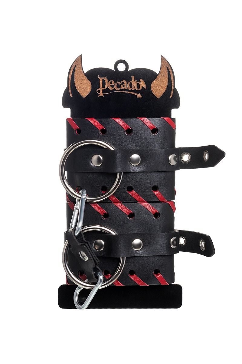 Готовы играть по-взрослому? Не бойтесь своих желаний! Основатели бренда уверены: лучший способ избавиться от искушения - поддаться ему! Добавьте пикантную деталь в ролевую игру и воплотите самую смелую сексуальную фантазию в реальность! Двухслойные кожаные наручники с окантовкой красного цвета, могут стать стильным аксессуаром на «свободных» руках, но могут послужить вашим целям и фантазиям по своему прямому назначению. Наличие двух карабинов и колец позволяет использовать изделие как раздельно – аксессуар-манжеты, так и как наручники для фиксации. К широким металлическим кольцам также можно присоединить и другие аксессуары при помощи карабинов. Благодаря универсальному размеру наручники могут использоваться и мужчинами, и женщинами. Размер легко регулируется с помощью металлических пряжек, органично вписывающихся в общий стиль. Длина манжет - 20 см, ширина манжет - 6,5 см. Длина сцепки - 13 см.
