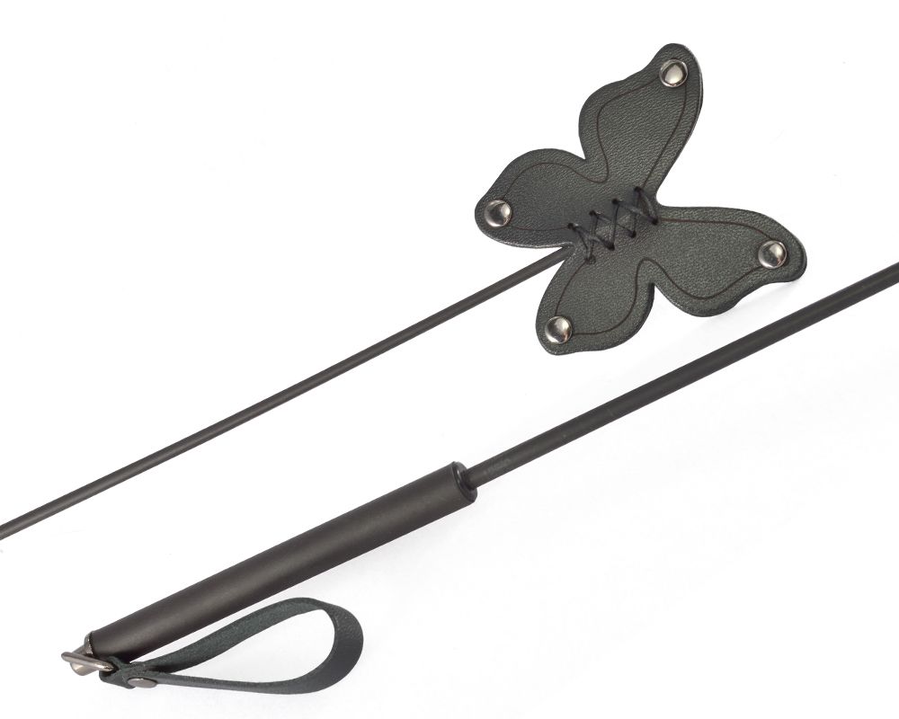 Стек бабочка – предназначен, как для ценителей властной БДСМ игры, так и для ванильных сексуальных игр. Имеет прочный и гибкий хлыст длиной 41 см. Металлическая ручка имеет кожаный ремешок для удобного хранения. Шлепок из натуральной кожи в формы бабочки с изящной декоративной строчкой. Металлическая фурнитура имеет ниrелевое покрытие. Длина ручки - 10 см.